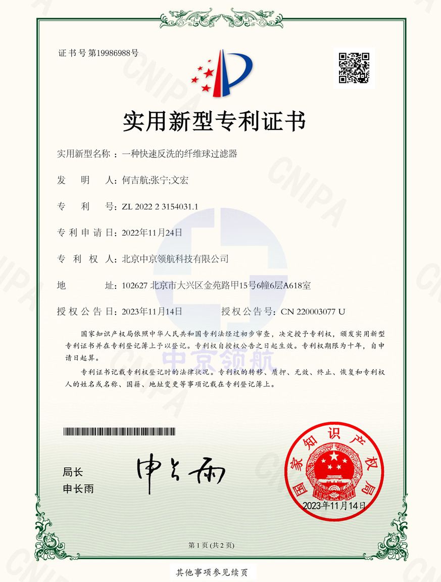 摘要:本实用新型公开了一种快速反洗的纤维球过滤器,包括罐体,所述罐体的底部对称连接有支撑脚,所述罐体的顶部安装有正反电机,所述正反电机的输出轴固定连接有搅拌机构,所述搅拌机构的底部固定连接有搅拌内胆,所述搅拌内胆的顶部设有内入口,所述搅拌内胆的内部固定连接有多孔板,所述罐体的一侧顶部固定连接有进水管,所述进水管的一端固定连接有布水管,所述进水管的另一端连接有进水口和反洗排水口,所述搅拌内胆的内部固