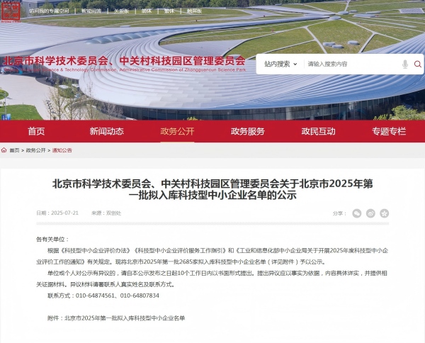 近日,北京市科学技术委员会、中关村科技园区管理委员会发布《关于北京市2025年第一批拟入库科技型中小企业名单的公示》。北京中京领航科技有限公司成功入选此批入库名单!
